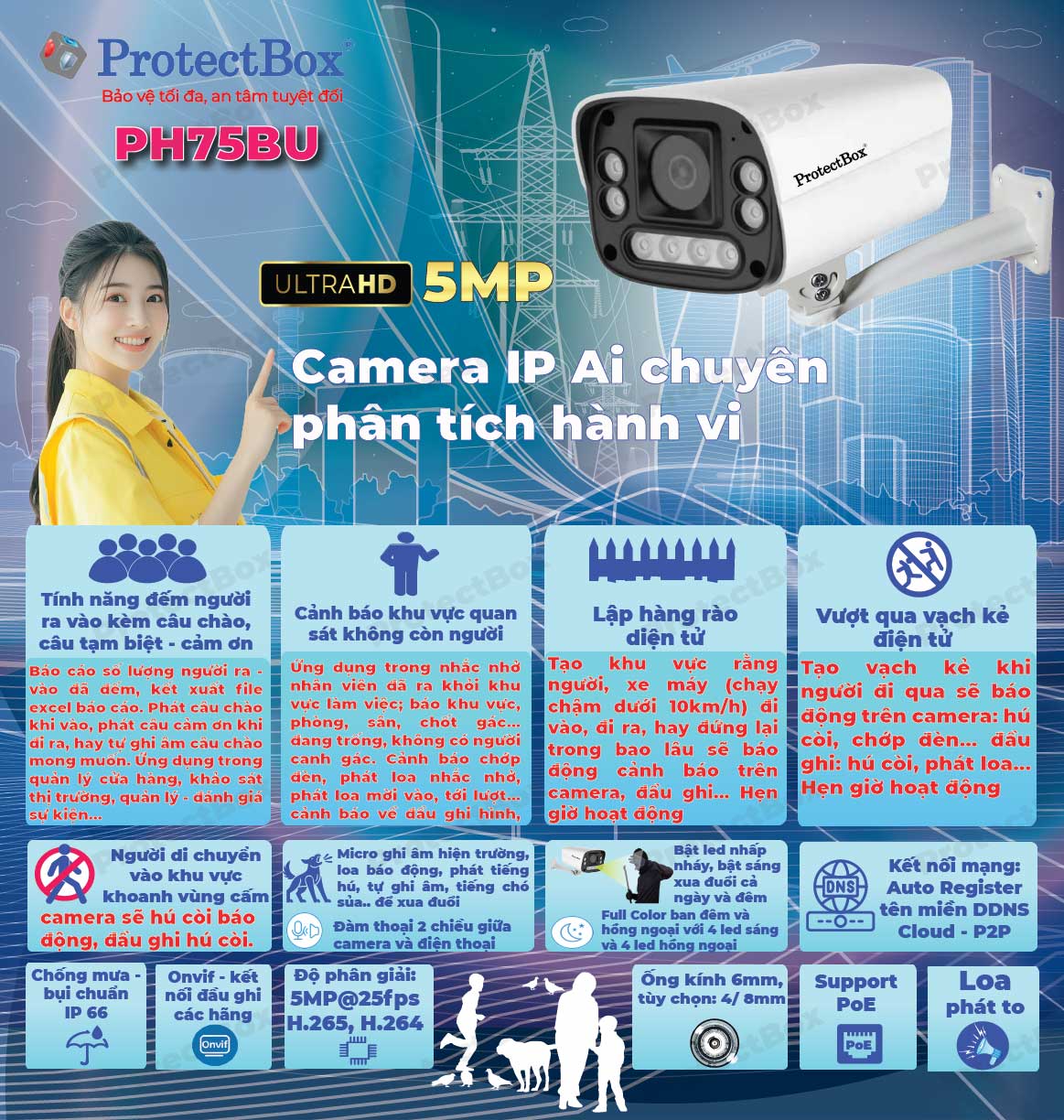 Camera IP Ai ProtectBox PH75BU (Phân tích hành vi)