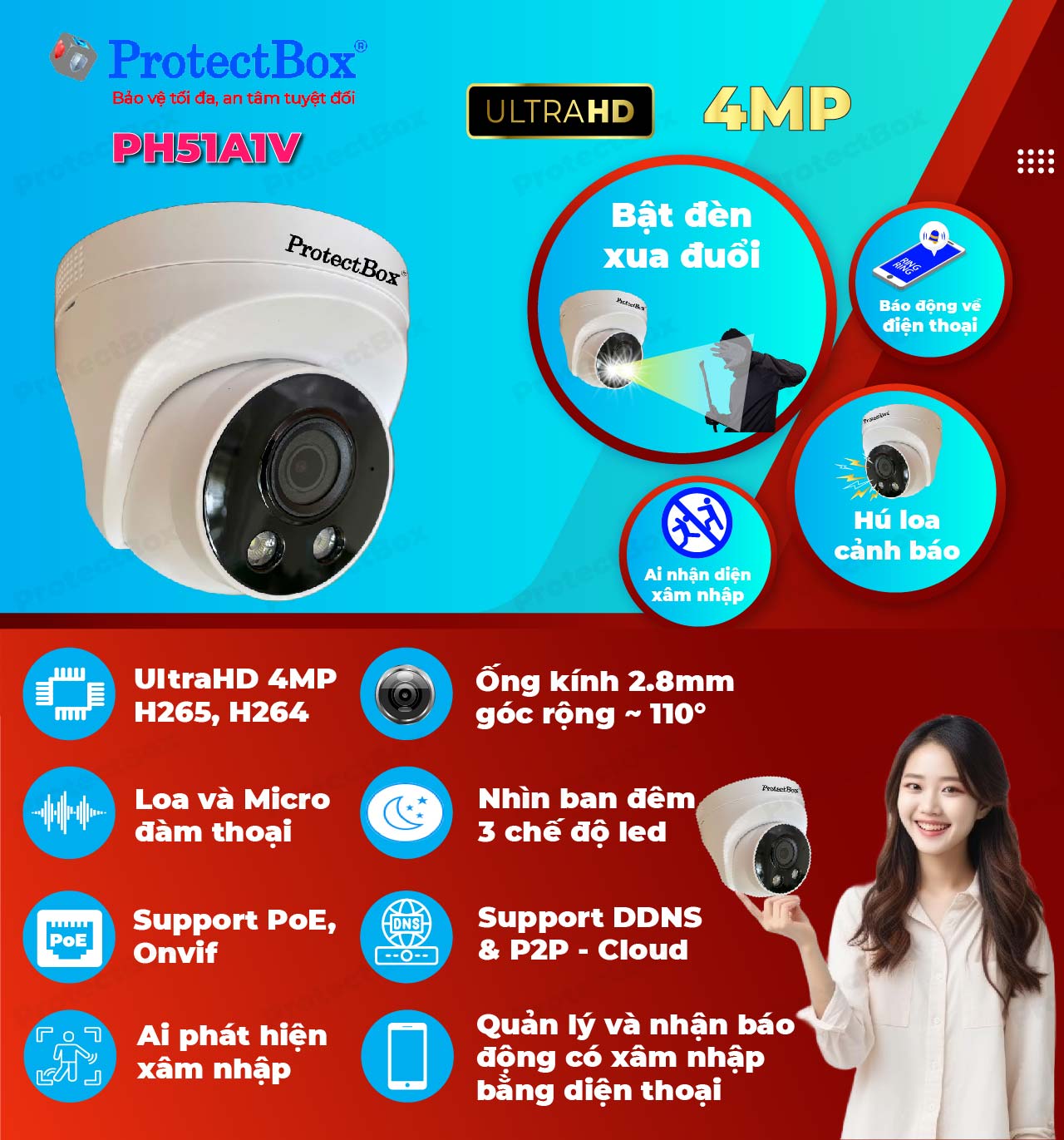 Camera IP Dome báo động 4MP ProtectBox PH51A1V