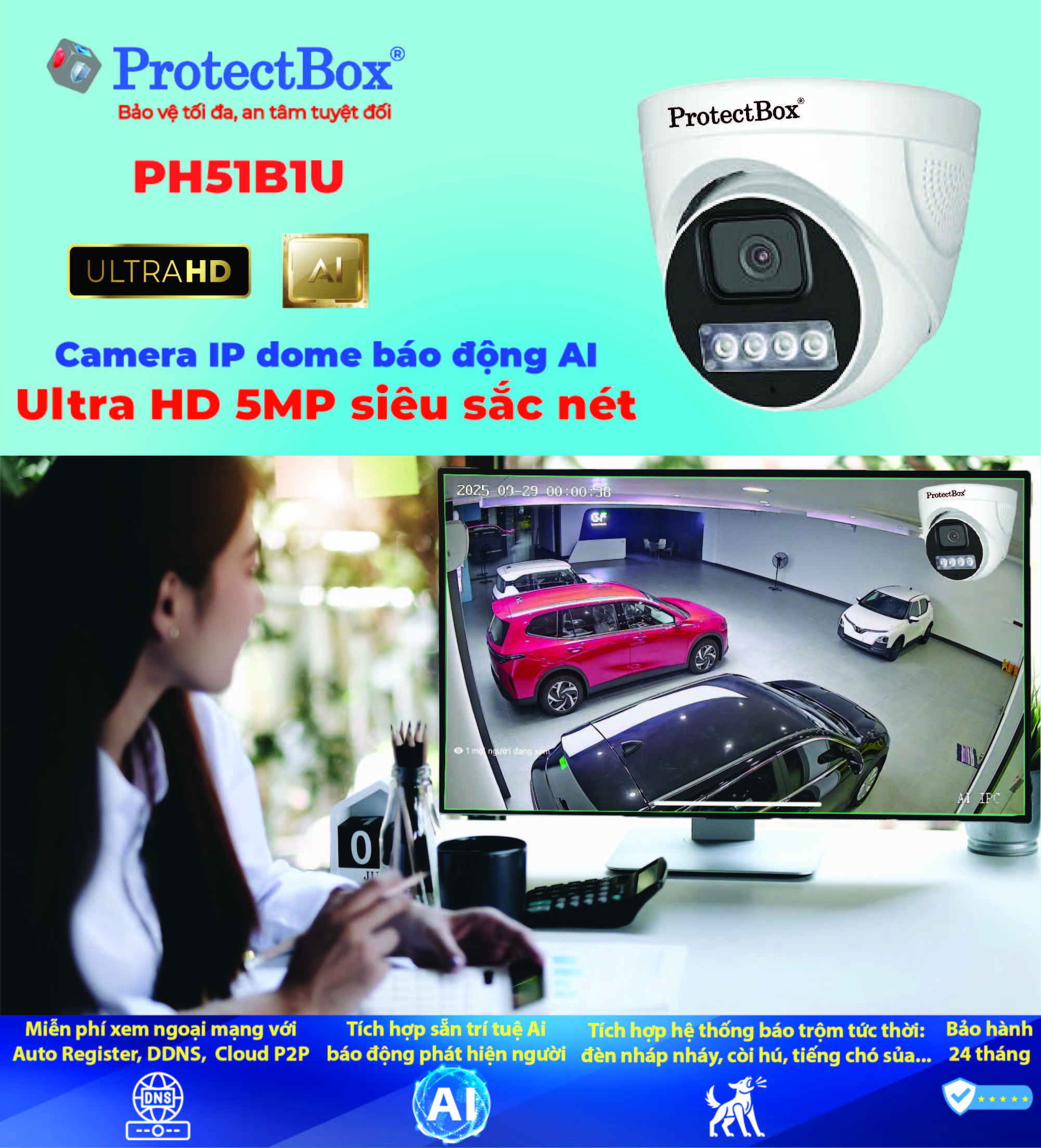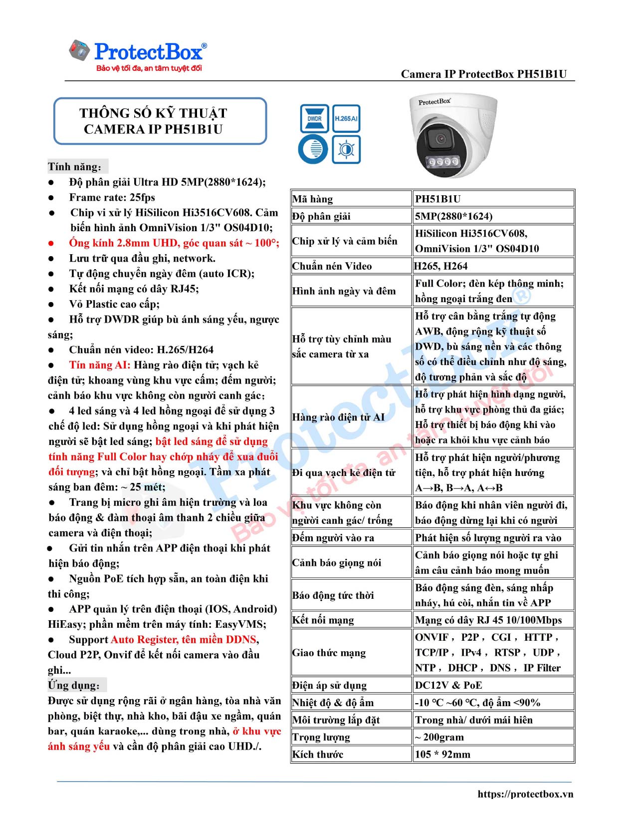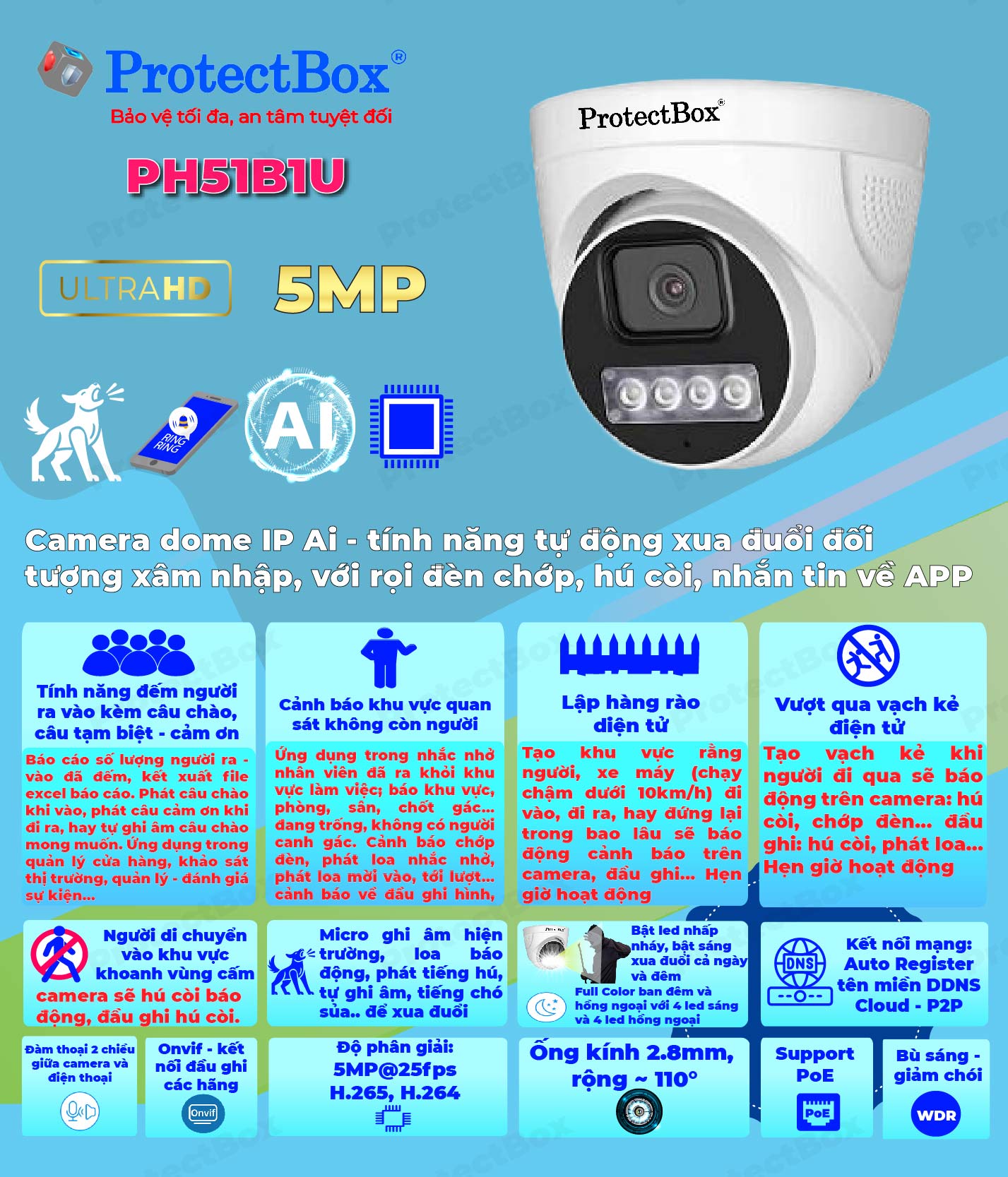Camera IP Dome tích hợp AI 5MP ProtectBox PH51B1U