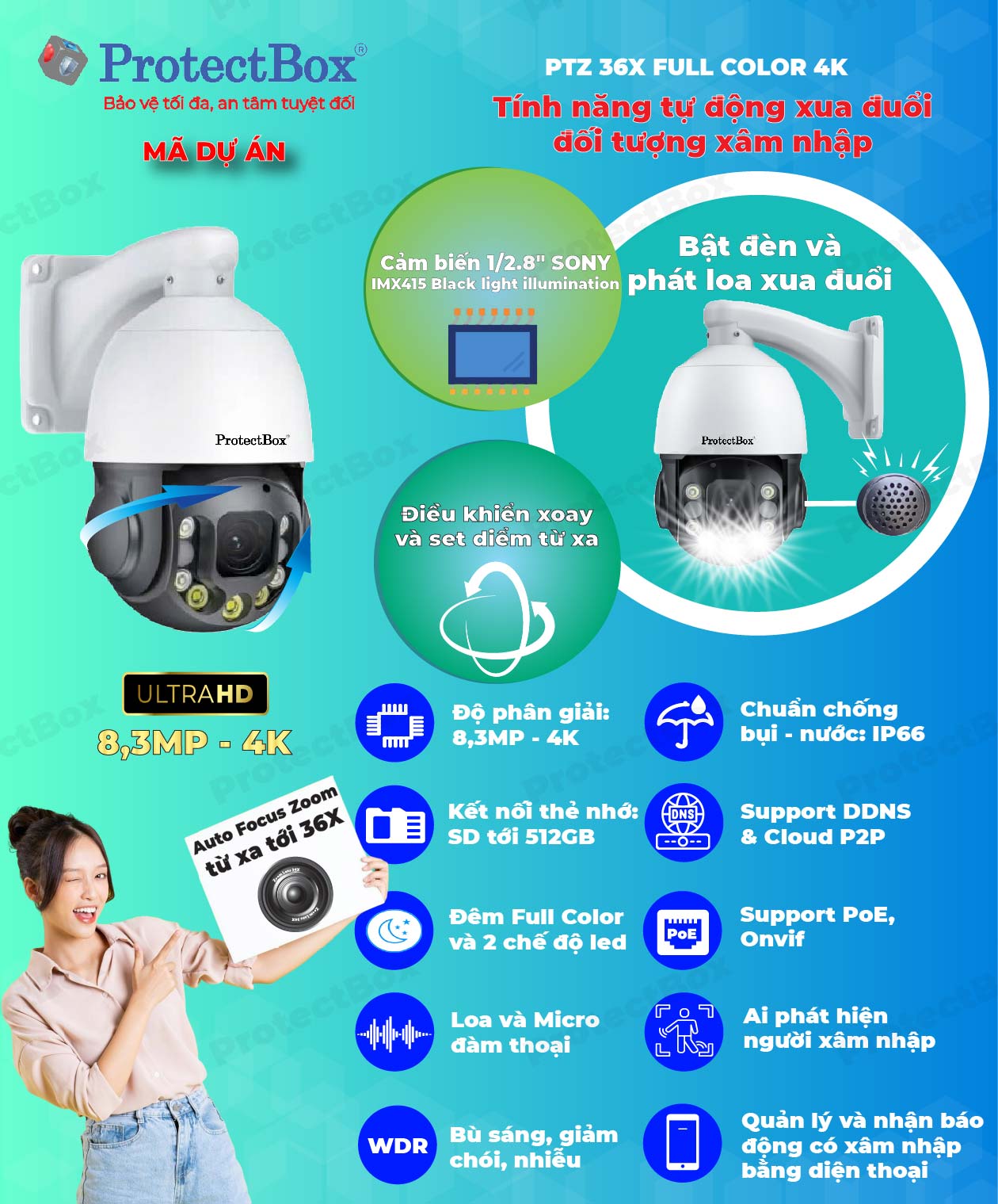 Camera IP PTZ Full Color Zoom 36X ProtectBox