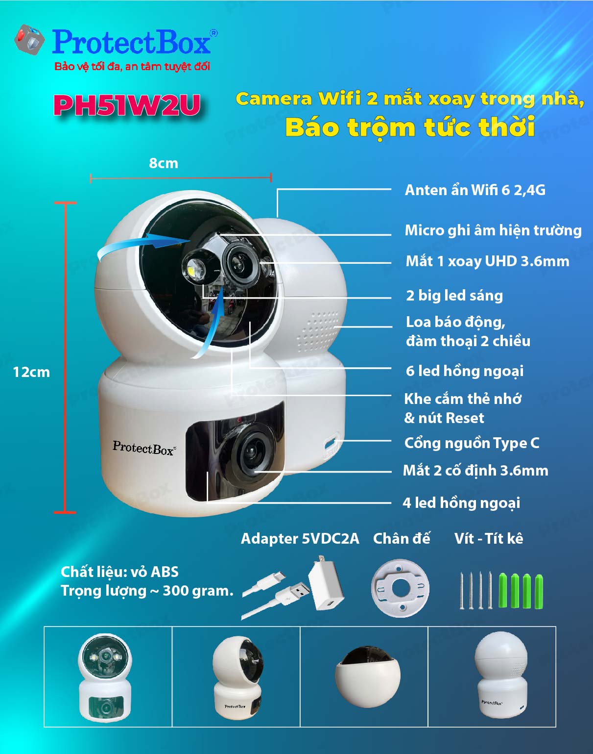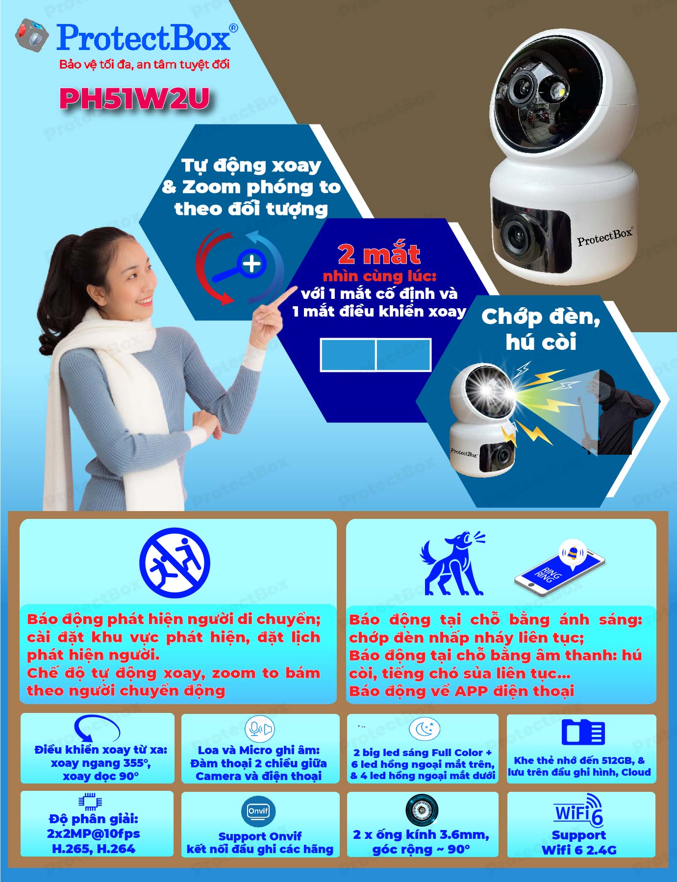 Camera IP Wifi Robot 2 mắt Báo trộm ProtectBox PH51W2U