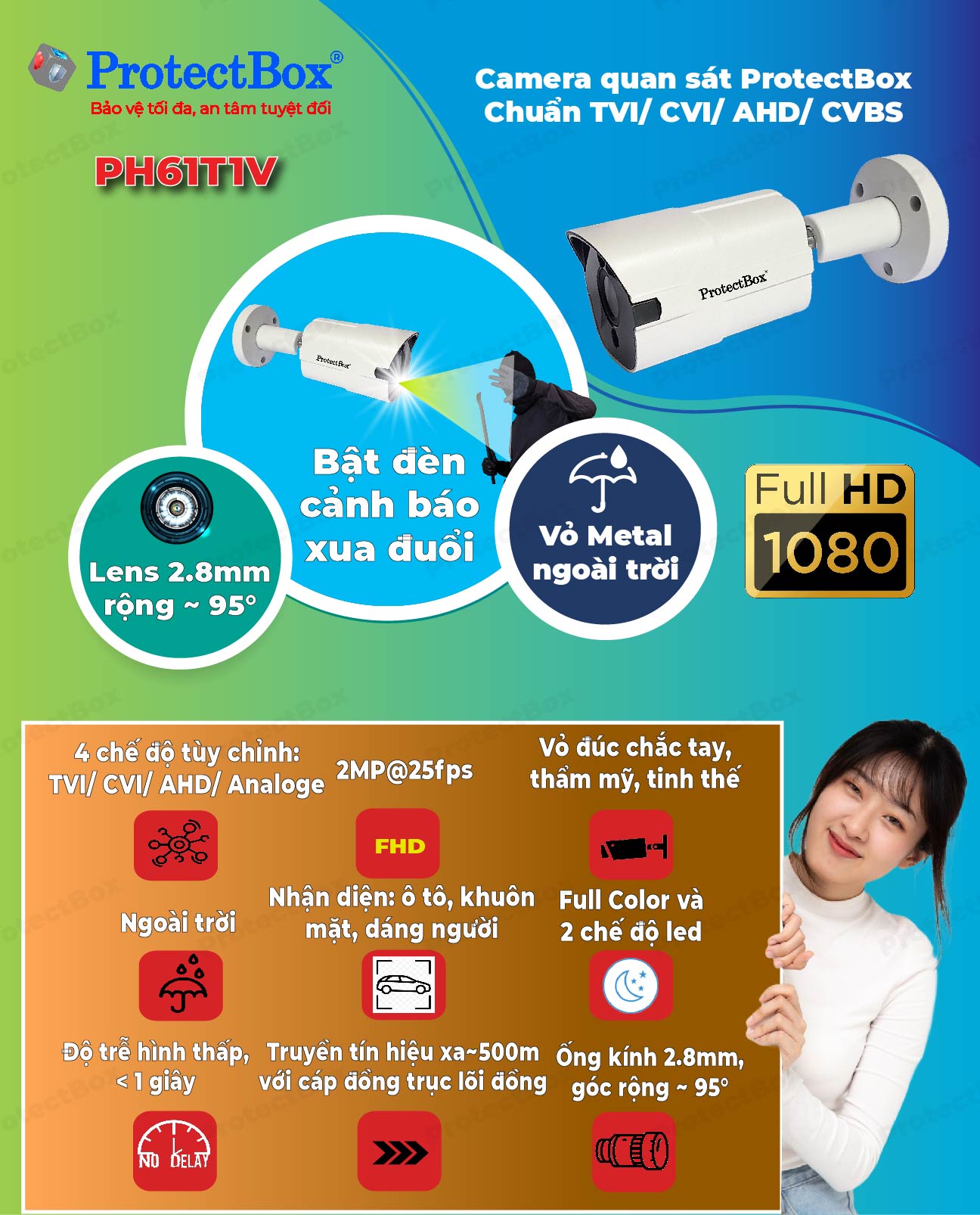 Camera quan sát TVI/ CVI/ AHD/ CVBS ProtectBox PH61T1V