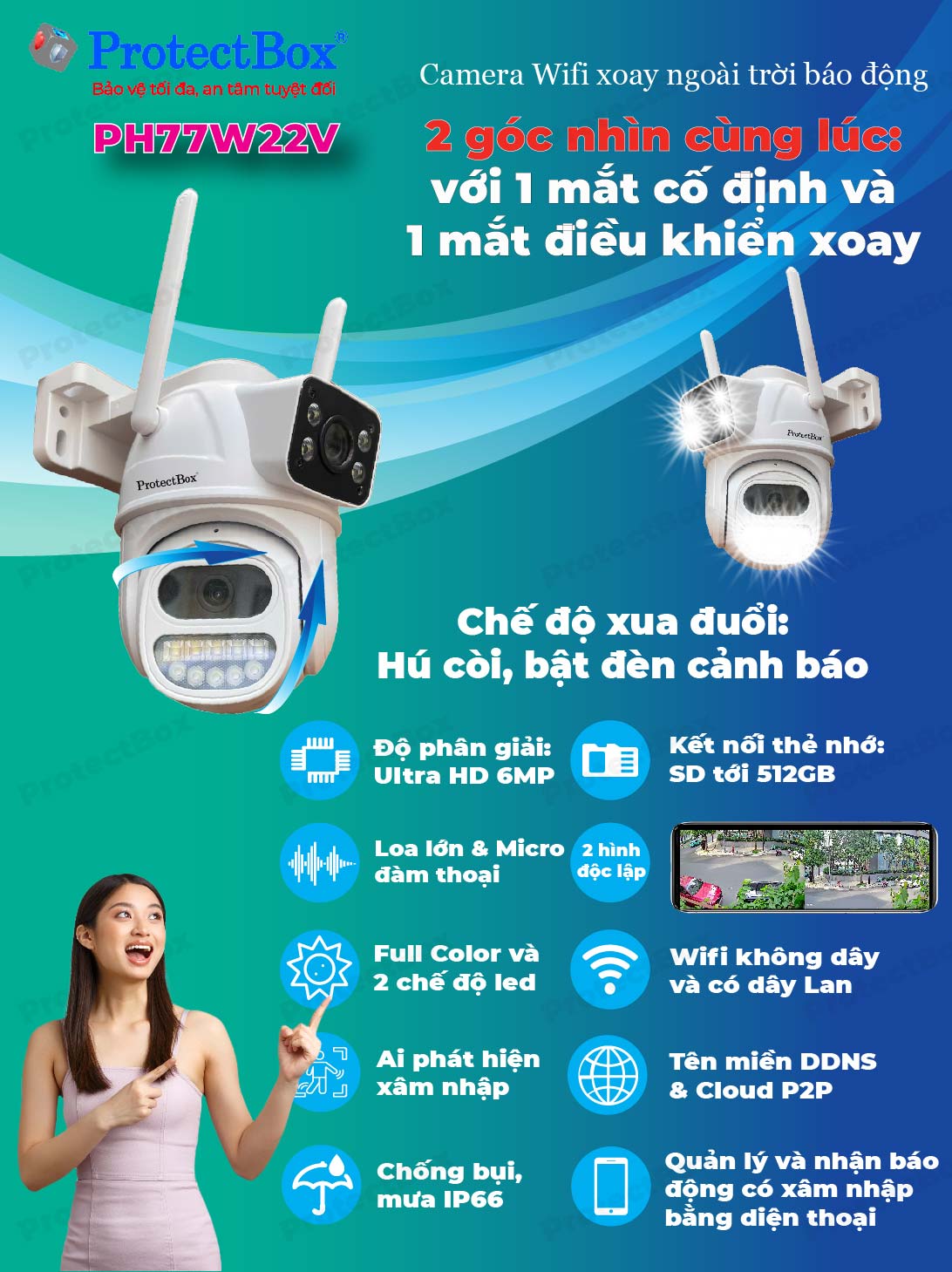 Camera Wifi xoay ngoài trời 2 mắt 6MP ProtectBox PH77W22V