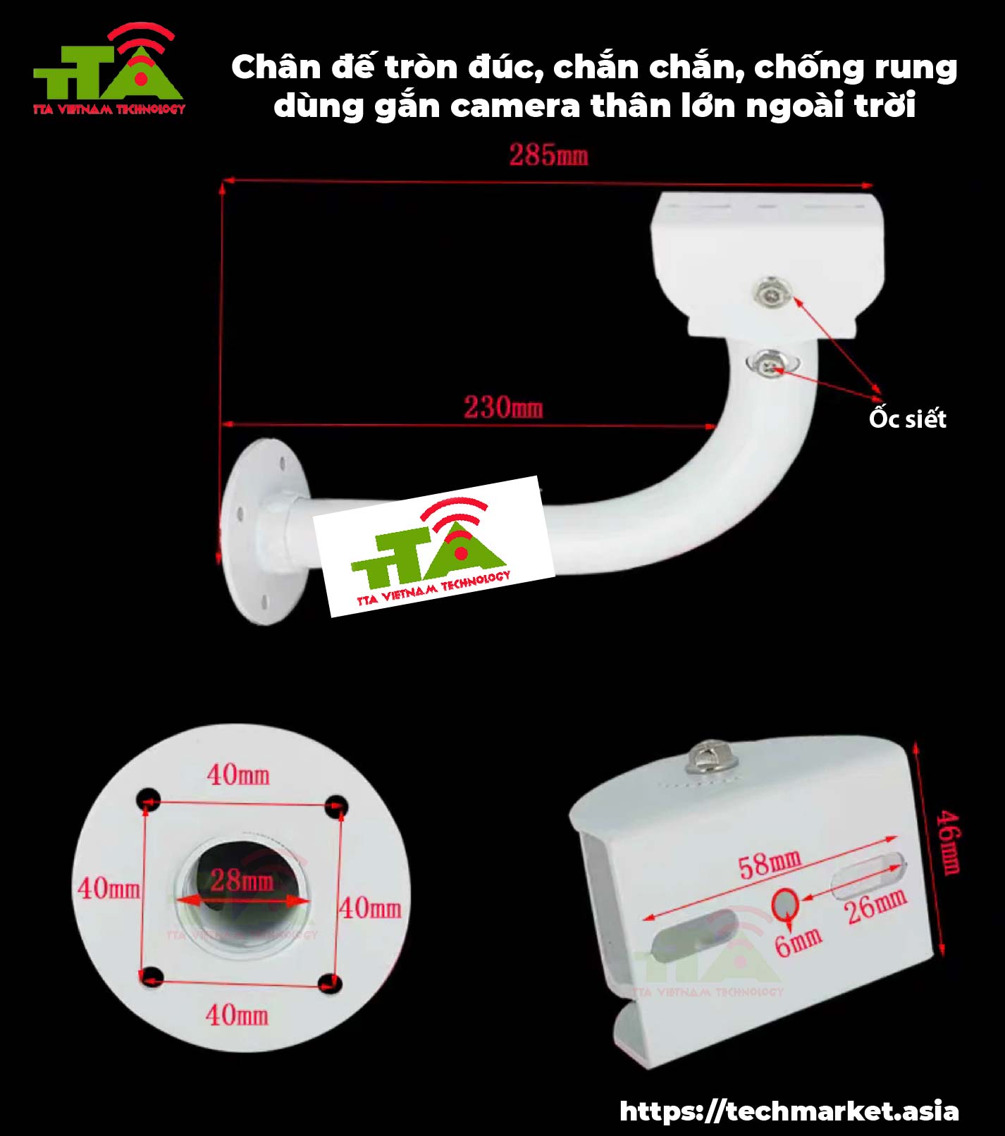 Chân đế camera size lớn, tròn đúc, chắn chắn, chống rung cho camera thân lớn ngoài trời