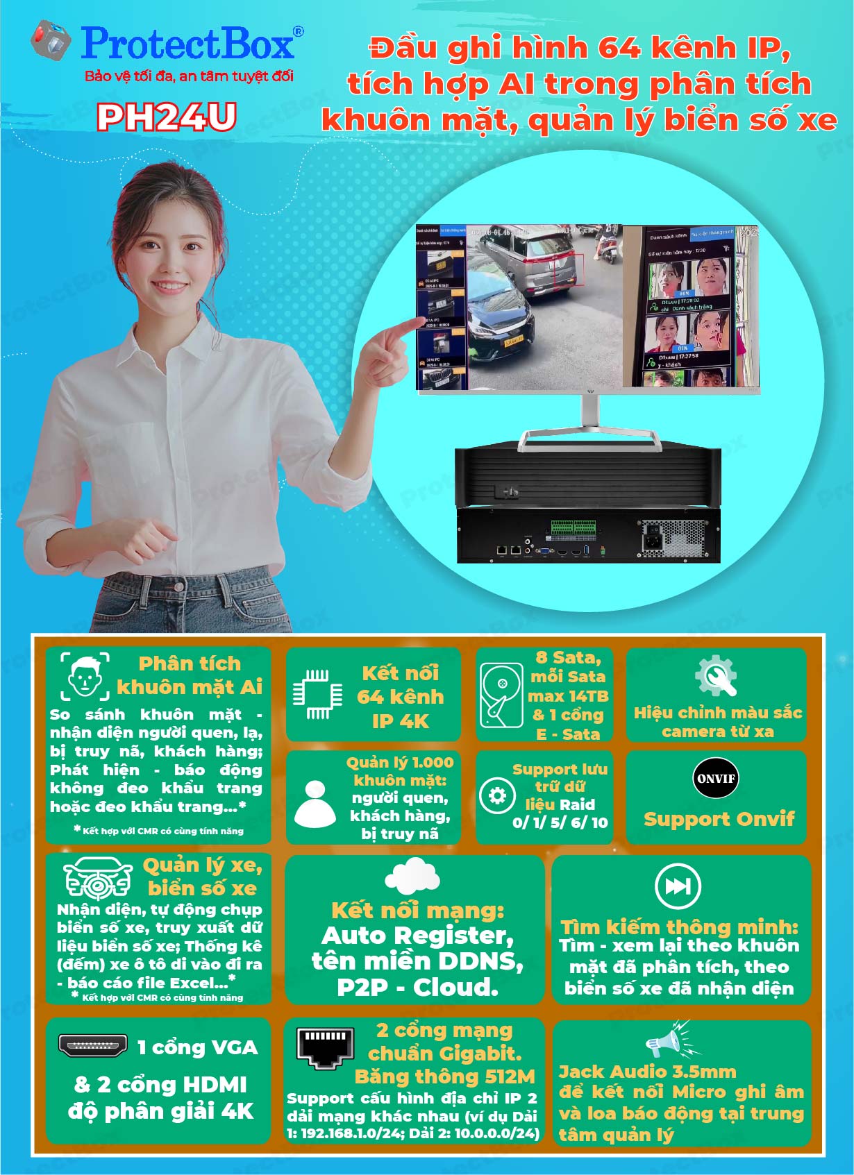 Đầu ghi hình 64 kênh IP 8M Ai ProtectBox PH24U